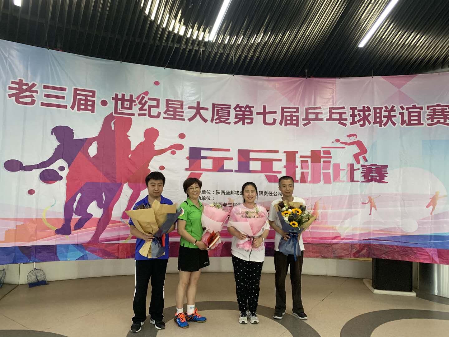 2019年5月24日下午4时30分,第七届老三届世纪星大厦业主乒乓球联谊赛,顺利落下帷幕。我公司董事长张平丽女士,取得女子单打亚军。