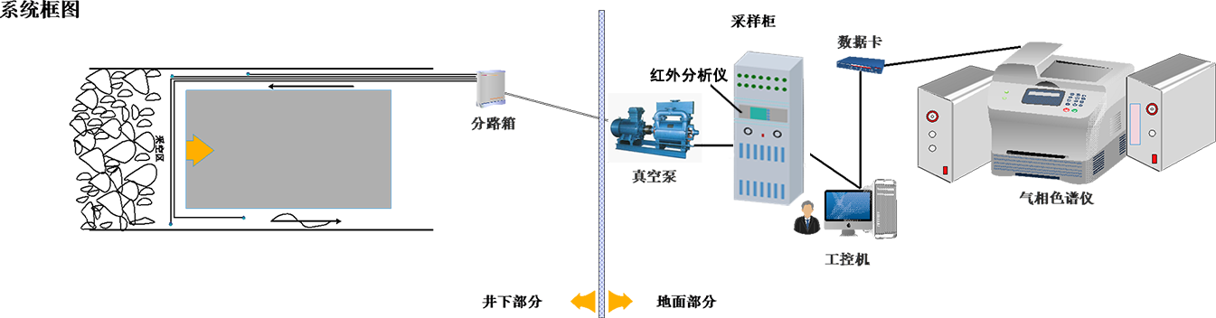 JSG-8 矿井火灾束管监测系统 系统构成:气相色谱分析仪,真空泵,采样泵;功能特点:通过束管采样装置将监测点气体送至气相色谱仪,实现对CO、CO2、CH4、C2H4、C2H6等气体含量的在线监测;适用范围:采空区和封闭区煤自然发火程度预报。