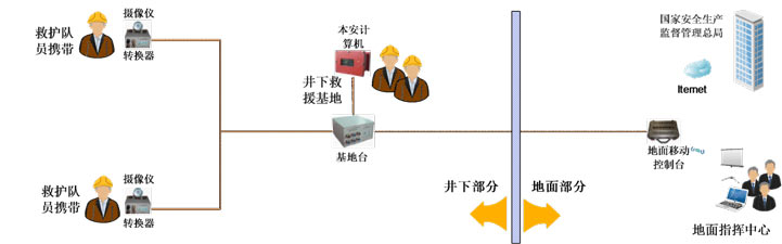 KTE5 矿山救援可视化指挥装置系统构成:KTE5.1转换器、KTE5.2基地台、KTE5.3中继器、KTE5.4地面数据交换隔离器、本安型计算机、KBA-H矿用本安红外摄像仪、快速布线盘、笔记本电脑;功能特点:即铺即用、快速组网、操作简便;便携式设备体积小、重量轻;基地设备与前端设备自成系统、独立运行;自备电源、自成系统;事故现场图像、语音资料完整实时记录并回放。