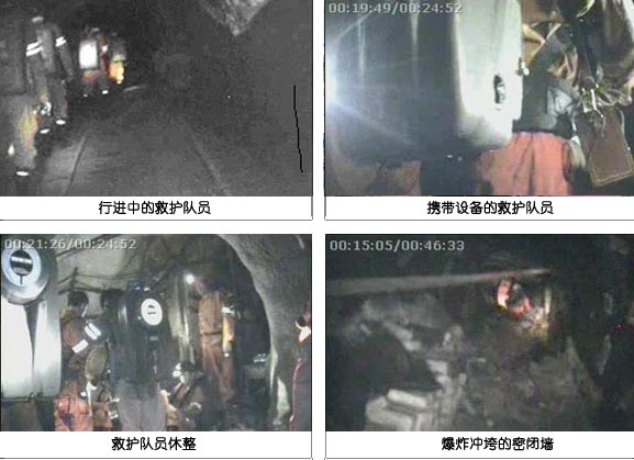 河北宣东矿井下灾害勘测与治理 在宣东矿灾区缩封和火区治理及启封过程中,应用矿山应急救援通信装置对灾区情况进行详细侦察,顺利完成了相关任务,达到预期目的,有效地指导了灾区缩封和启封工作。应用单位:邯郸救护队、邢台救护队、开滦救护队、八宝山救护队、盛源公司救护队、金牛公司救护队。 注:图为井下救护现场。